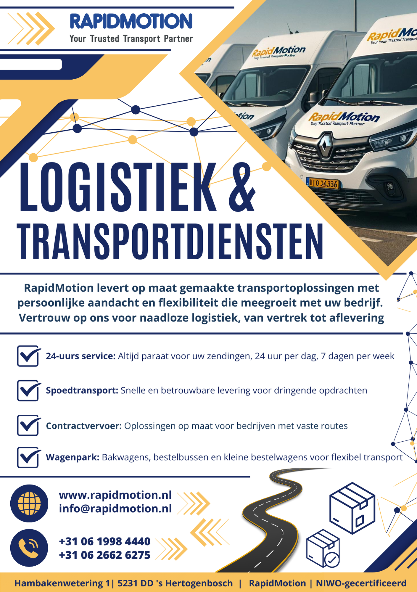 Met een breed scala aan diensten willen wij bij RapidMotion voldoen aan de diverse behoeften van onze klanten en streven wij ernaar een vooraanstaande rol te spelen in de logistieke sector.